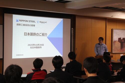 10月30日(木) 日本製鉄北日本製鉄所室蘭地区様、日鉄テックスエンジ様、日鉄ファーストテック様、3社による出前授業を2年電子機械科を対象に実施しました。