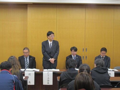 2学年保護者の方を対象に第四回保護者懇談会を実施しました。当日は約70名の保護者の皆様に御来校いただきました。懇談会では、学習面や生活面、進路に向けての説明がありました。また、見学旅行説明会では、見学旅行に参加する際の注意事項などについての説明がありました。お忙しい中、お集まりいただきありがとうございました。